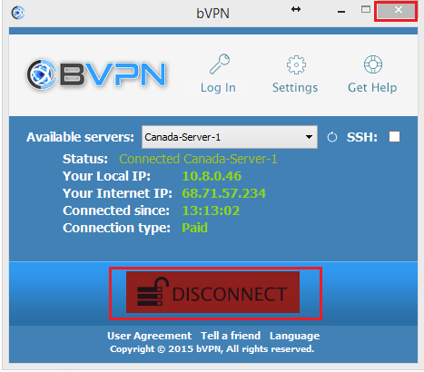 Вот как b.VPN будет выглядеть, когда вы успешно «подключитесь».
